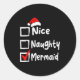 Nice Naughty Mermaid Funny Christmas List Family M Classic Round Sticker
