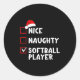 Nice Naughty Softball Player Funny Christmas List Classic Round Sticker
