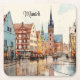 Nice square paper coaster with scenic landscape with Munich, Germany famous place in Eastern.