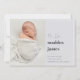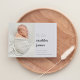 Modern minimal birth announcement card in cool neutrals features a vertical or portrait orientated photo aligned at the right with "Hi, I'm [Name]" alongside. Personalise with baby's birth date, stats, and a family signature, and add three additional square photos to the back.