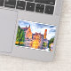 Nice sticker with scenery with a water canal in Bruges, "Venice of the North", city escape of Flanders, Belgium.