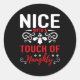Stickers had a glossy finish which gave them a very professional look. The colour is perfect. And they are the exact size of my lip balm lids. Printing is crisp and clear. Will definitely be ordering again.