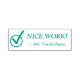 This positive rubber stamp design features the motivating feedback message "NICE WORK!" and a custom tutor name. It also features a decorative checkmark. It could be used by a teacher or educator when marking assignments, to acknowledge that the student has done a great job.