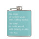 Well made flask, a little better than I had expected. Flask came in clear plastic box which gave it a nice presentation when I took it out of the zazzle packaging. Image is not printed on flask but on sticker. Don't know how this will hold up I haven't used it yet. This would make a Great gift! I plan to purchase more for friends! Cheers. I thought a little brighter than computer. Very crisp, writing wasn't
