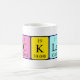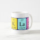 Nicklas spelled out as Ni C K La S (Nickel Carbon Potassium Lanthanum Sulfur) on a mug for the scientist in you.