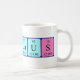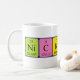 Nicklaus spelled out as Ni C K La U S (Nickel Carbon Potassium Lanthanum Uranium Sulfur) on a mug for the scientist in you.