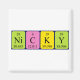 Nicky spelled out as Ni C K Y (Nickel Carbon Potassium Yttrium) on a magnet for the scientist in you.
