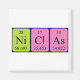 Niclas spelled out as Ni Cl As (Nickel Chlorine Arsenic) on a magnet for the scientist in you.