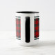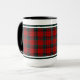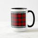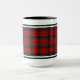 Coffee mug with the tartan for Clan Nicholson, MacNichol, and its septs including Nichole. Bright red, black, and forest green Scottish plaid pattern from 1845 with light blue accents.