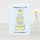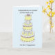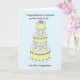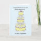 Three tiered, lovely pastel coloured wedding cake, with the words 'Congratulations to my Niece and her Bride to Be on their Engagement'.