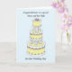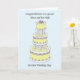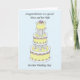 A multi tiered stylish wedding cake, set against a pastel blue background. The words 'Congratulations to a special niece and her wife on their wedding day', accompany the image.