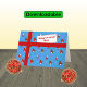 A cute card for your niece in the style of a Christmas parcel tied with red ribbon. The design features a light blue background with robins, santa claus figures and scattered snowflakes. The greeting is "Happy Christmas Niece", written on the 'gift tag' tucked into the 'ribbon'.