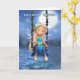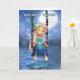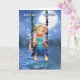 A sweet fairy on a swing bathed in the moonlight, pretty peacock colours on her clothing and matching flower in her hare, a bright pretty card for any fairy fan