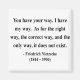 "You have your way. I have my way. As for the right way, the correct way, and the only way, it does not exist." - Friedrich Nietzsche