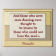 And those who were seen dancing were thought to be insane by those who could not hear the music. Nietzsche art poster - art print