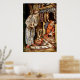 The Night Before Christmas Children in Bed Poster by Arthur Rackham is a whimsical and detailed 1915 illustration, portraying a magical Christmas Eve moment. In this captivating scene, a man dressed in pyjamas holds a candlestick as he catches a glimpse of Santa Claus, just as he ascends back up the chimney after delivering gifts. Rackham’s masterful use of fine lines and muted, earthy tones brings the room to life, with children peacefully sleeping in their beds, unaware of the enchanting event unfolding nearby. The cosy atmosphere is enhanced by subtle holiday decorations, while the glowing candlelight and the man’s astonished expression add to the magic and mystery of Christmas night. This vintage poster perfectly captures the charm and wonder of the holiday season, making it a treasured piece of art for any festive setting.