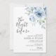 the night before, dusty blue floral simple modern script rehearsal dinner invite. The text and grey colours can be edited.