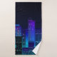 Night city panorama with neon glow on dark backgro bath towel