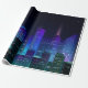 Night city panorama with neon glow on dark background. Futuristic cityscape with glowing neon purple and blue lights. City skyline. illustration with megapolis,skyscrapers,buildings.