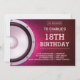 Night club theme birthday celebration invitation. Pink disco lights and a music speaker, perfect for a venue like a bar or night club or pub.