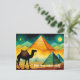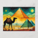 Desert camel with Egyptian pyramids postcard. Easily customise the message for your needs.