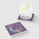 Night Garden Faux Embroidered Moon with Moths Stone Coaster