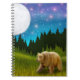 Original fine art design of a Grizzly bear walking in the Northern moonlight by artist Carolyn McFann printed on a notebook for wildlife fans.