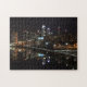 This night photo of the city of Philadelphia was taken from a bridge crossing the Schuylkill River. The Schuylkill Banks riverwalk runs along the bank of the river closer to Centre City, while the blurred lines of cars travelling on the Schuylkill Expressway can be seen on the left.