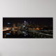 This night photo of the city of Philadelphia was taken from a bridge crossing the Schuylkill River. The Schuylkill Banks riverwalk runs along the bank of the river closer to Centre City, while the blurred lines of cars travelling on the Schuylkill Expressway can be seen on the left.