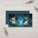 Define your brand with the magical elegance and celestial mystery of a forgotten realm using this captivating business card. The design centers on a spectacular nocturnal landscape, dominated by jagged, dark craggy mountains and a misty, blue-toned valley. The backdrop features a starry, deep blue sky and hints of atmospheric fog, enhancing the drama. The entire scene is lavishly framed by lush rose bushes in the foreground, showcasing beautiful creamy yellow and pale white roses complemented by dark foliage and small blue filler flowers. A delicate, metallic gold arch elegantly frames the dramatic valley view, providing a sophisticated space for your essential information. This artwork blends cinematic, magical realism with opulent, romantic florals, making your card truly unforgettable. This business card is ideally suited for a high-end event stylist specializing in fantasy or twilight-themed galas, a boutique hotelier wanting to convey a mystical, serene setting, or a fine art photographer showcasing dramatic nature scenes. It would also perfectly suit a fantasy novelist or editor seeking distinctive, narrative-driven branding, or a luxury florist emphasizing vibrant, dark botanical arrangements.