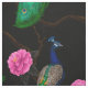 Peacock birds perching on branches and pink camellia flowers, this pattern is hand drawn in Photoshop.