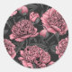 Night peony garden in pink and grey classic round sticker