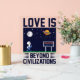 "Bring a playful cosmic twist to your style with this unique design featuring the tagline ‘Love is Beyond Civilisation’ along with a fun depiction of an alien and spaceship. Perfect for sci-fi fans, space lovers, and anyone who enjoys quirky, imaginative art, this design blends humour with a heartwarming message. Great for casual wear, gifts, or expressing your love for the universe, it’s a fun-filled graphic that celebrates love, individuality, and creativity with an extraterrestrial vibe."