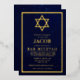 Gold foil on a dark night sky background makes for a modern sophisticated Bar Mitzvah invitation. Gold foil border and star of david design. Personalise with your Bar Mitzvah party information.