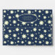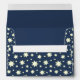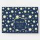 This design features a deep navy blue background beautifully adorned with glowing golden-yellow stars in various sizes. The repeating star pattern creates a dreamy, celestial effect, giving the piece a magical and elegant look. At the centre, there is a dark navy label outlined with a golden border, where personalised text can be placed, such as a name and address. The overall style feels festive, celebratory, and enchanting, making it suitable for events like birthdays, weddings, baby showers, holiday gatherings, or any occasion with a night-sky or starry theme. The glowing stars against the dark background add both charm and sophistication, making it stand out as a stylish stationery design.