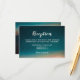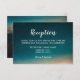 Elegant wedding reception template card. Background is a beautiful photograph of a dark turquoise blue night sky with a galaxy of stars on the front and a sunrise over mountains on the back. All text is fully customisable, in a stylish combination of fonts.