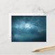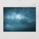 Photo collage, combining multiple images of storm clouds, and a moon photo. The result is an atmospheric, dark blue night sky, with a glowing full moon shining through the clouds.