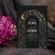 Stellar Romance: The Ultimate Wedding Invitations for Star-Crossed Lovers. Ready to narrate your love saga in the most enchanting way imaginable? Your search ends here! These wedding invitations, inspired by the celestial wonders of the universe, are perfect for themes like "Written in the Stars," "To the Moon and Back," and "Under the Stars." The romantic starry night sky is elegantly captured in a stunning arch-shaped design. These invitations evoke the awe of enigmatic planets, distant galaxies, and far-off constellations. The composition creates a breathtaking visual that feels like a doorway opening to your new marital journey. The black and gold colour scheme adds a layer of depth, transformation, and modern elegance. Prepare to dazzle your guests and set the stage for a wedding that's truly out of this world!