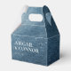 Elements: watercolor background, serif and san serif fonts. Colours: blue, white, silver, navy. Themes: space, stars, night, a night under the stars, written in the stars, heavenly, celestial, modern, contemporary, evening wedding, outdoor wedding. Collection: Night Sky Stars Navy Blue White Wedding Suite. Product Type: Favour Box - Gable