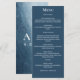 Elements: watercolor background, serif and san serif fonts. Colours: blue, white, silver, navy. Themes: space, stars, night, a night under the stars, written in the stars, heavenly, celestial, modern, contemporary, evening wedding, outdoor wedding. Collection: Night Sky Stars Navy Blue White Wedding Suite. Product Type: Menu