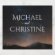Night sky wedding under the stars. Night sky astrophotography of a stunning snow covered landscape with millions of stars in the sky and bright light. Wedding collection with personalised customisable text.