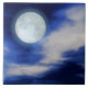 Moonscape print - mixed media graphic design, digitally enhanced photographic montage of the full moon, surrounded by a faint halo, against a deep blue night sky and moonlit clouds