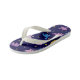 These cute kid's flip flops feature blue and purple dinosaurs against a dark blue night sky with yellow stars. Any child will love these flip flops!