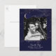 Navy and gold photo save the date postcards with night stars and crescent moon