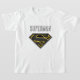 The t-shirt feels and looks great quality, a good thick cotton. It will be a little big for my son, but that means he will be able to wear it and not out grow it too soon. The print was as described on the order when personalised. True size, shape and colour T-shirt- thanks.