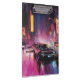 This captivating poster showcases bold neon lights illuminating a nighttime street race in a vibrant cityscape. Perfect for racing enthusiasts and urban art lovers.