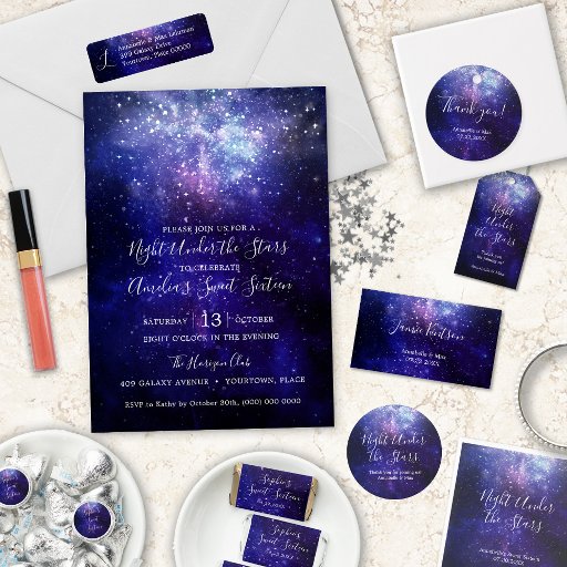Night Under the Stars Galaxy Sweet 16 Invitation