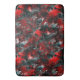 Rough drawing from graphic art where red suffers a slight gradient causing a perception of something twisted, especially when it contrasts with white grey and other parts clashes with black spots causing a perception that reminds of shadow, thus looking like parts of the 'red leaves' are floating or at a distance from the ground.