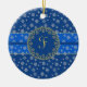 Nighttime and Snowflakes Monogrammed Ceramic Tree Decoration