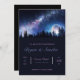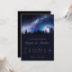 Beautiful Wedding Invitation with a blue and purple colour scheme which shows a dark forest, a full moon and a sky full of stars.